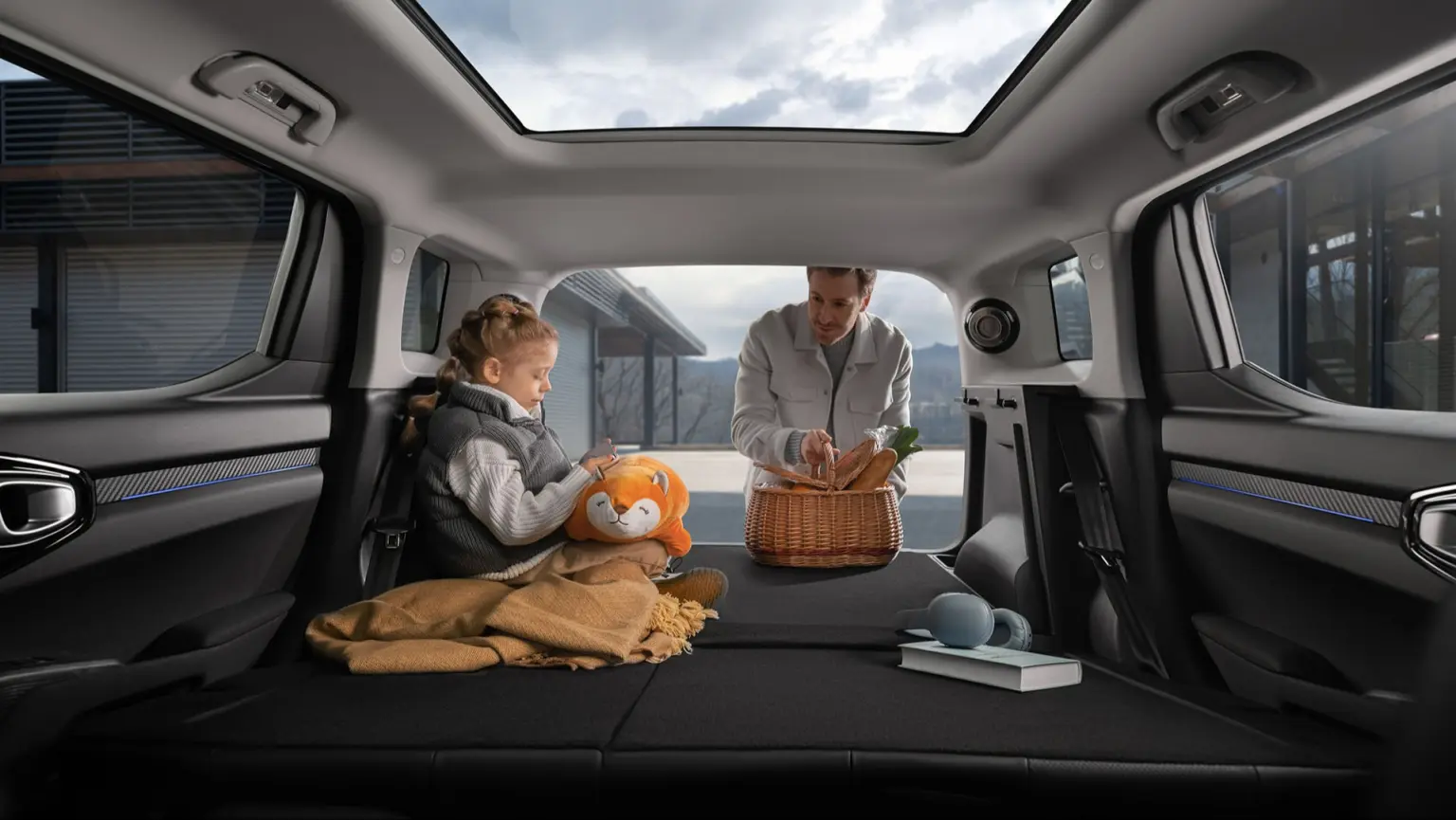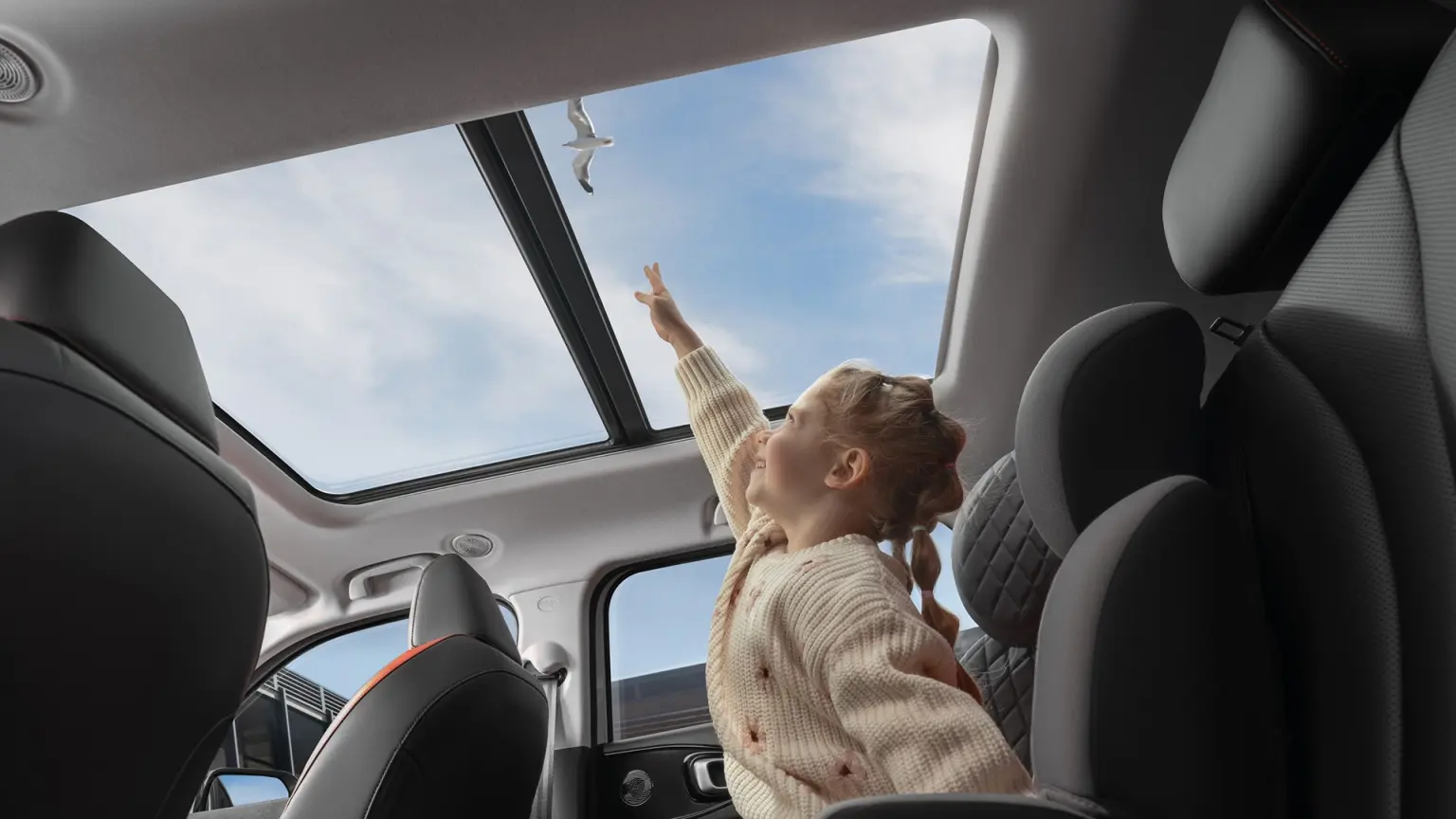 - Панорамная стеклянная крыша с люком