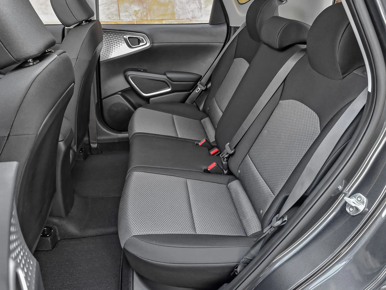 - Комбинированная отделка сидений из кожи и ткани с красной прострочкой
