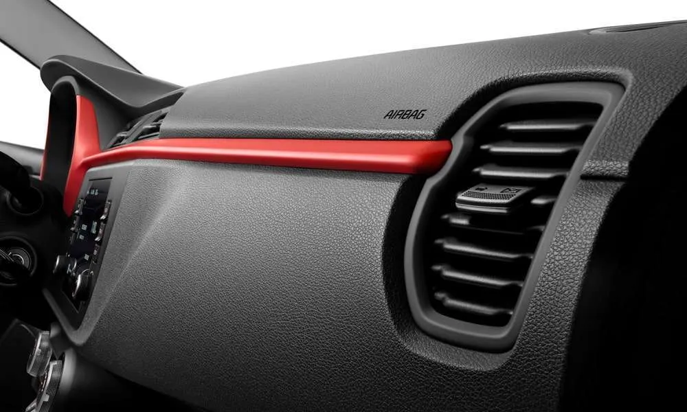 - Спортивный красный молдинг на центральной панели